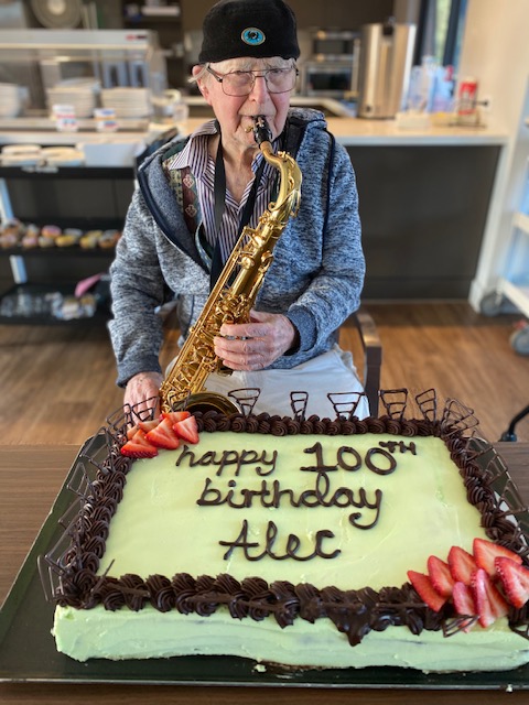 For this special milestone, Alec has celebrated by playing a tune or two on his saxophone.  To this day, Alec enjoys playing his saxophone for all our staff and residents.