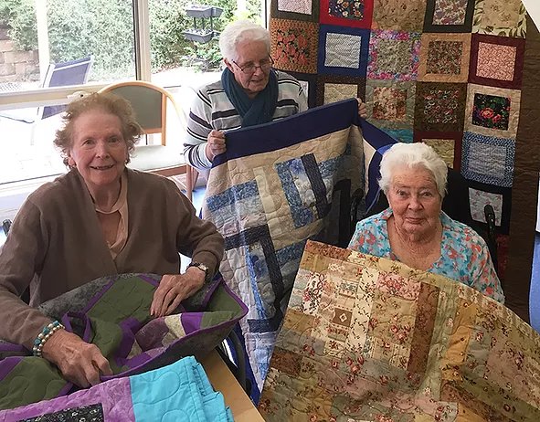 Beautiful quilts donated and residents learn the intriguing quilting process.